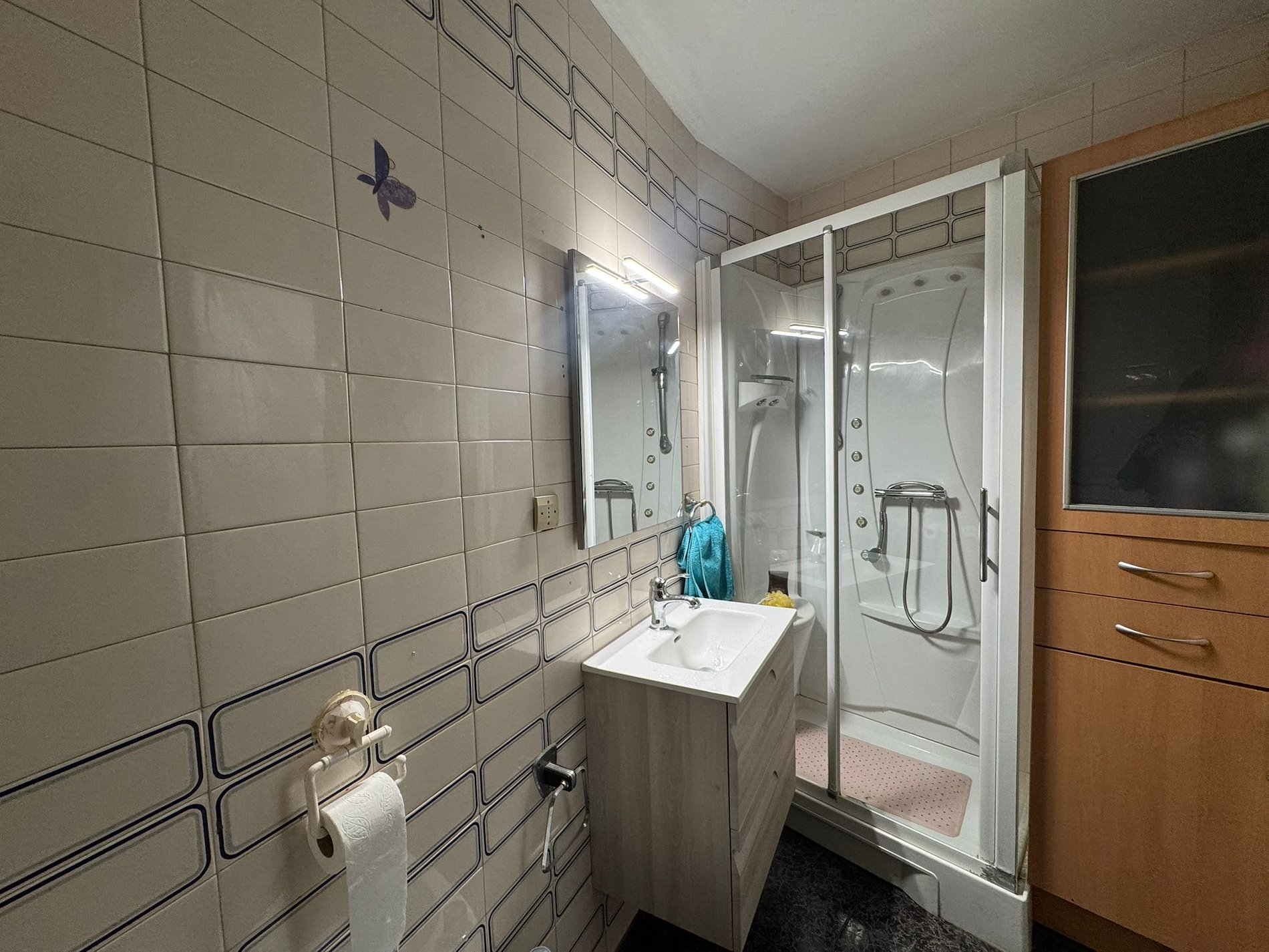 The sleeping area consists of 3 bedrooms: one bright 10 sqm exterior double room and two single rooms, ideal for children or a home office. The 8 sqm kitchen is practical and functional, boasting the significant advantage of an independent laundry room for extra daily convenience.